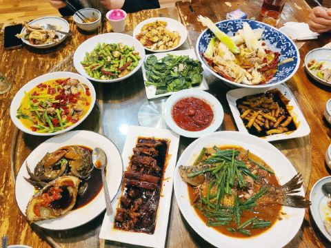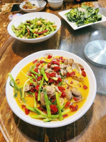 椒麻鸡,南乳仔排,辣炒花蛤,孜然菠菜,桂花糖年糕,卤鸡爪,大鱼吃小鱼,酸菜土豆炖牛肉,咖喱虾,大鱼烧小鱼,火龙果菠萝汁,米酒,墨鱼红烧肉,卤凤爪,大排,馄饨煮鱼,砂锅鱼头,南乳子排,经典风爪,石榴汁,西瓜柠檬汁,老板娘和服务员的脑残服务,油爆虾,大黄狗好乖,南乳 仔排,酸辣包心菜,三杯臭豆腐,青蟹煮面,自制米酒,土豆酸菜炖牛肉