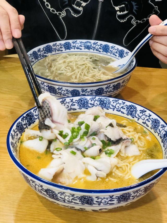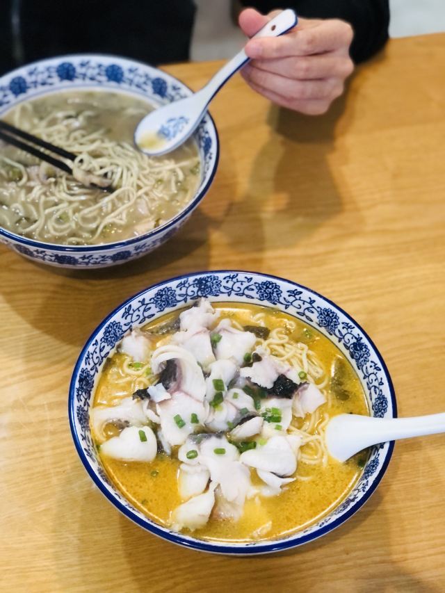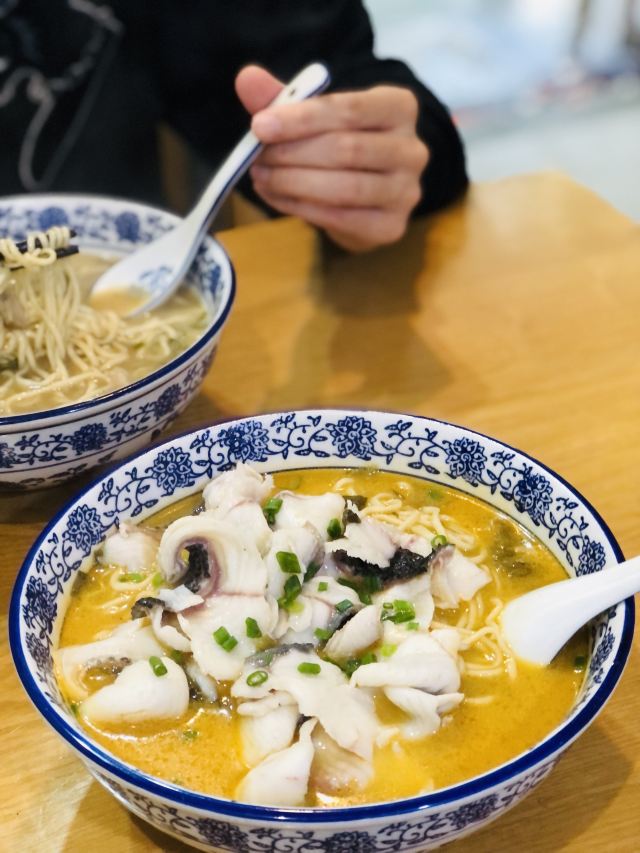 迪斯卡沃✨酸菜鱼面✨💰30 一上来的时候我都惊讶 这么大一碗吗? 筷子扒拉了一下 这个鱼片量真大! 而且每一片肉很厚实 肉很嫩! 面汤也很好喝 不油腻 很干净清爽 而且面量也很大 我是没吃完 但是汤被我喝完了😝果然是招牌❗️ ✨猪肝面✨💰18 另外还点了猪肝面 这猪肝好诱人 面量也很大 看见小伙伴都嗦完了😉 老板娘也好热情❤️外卖单不断 都点名要酸菜鱼面