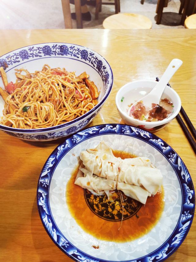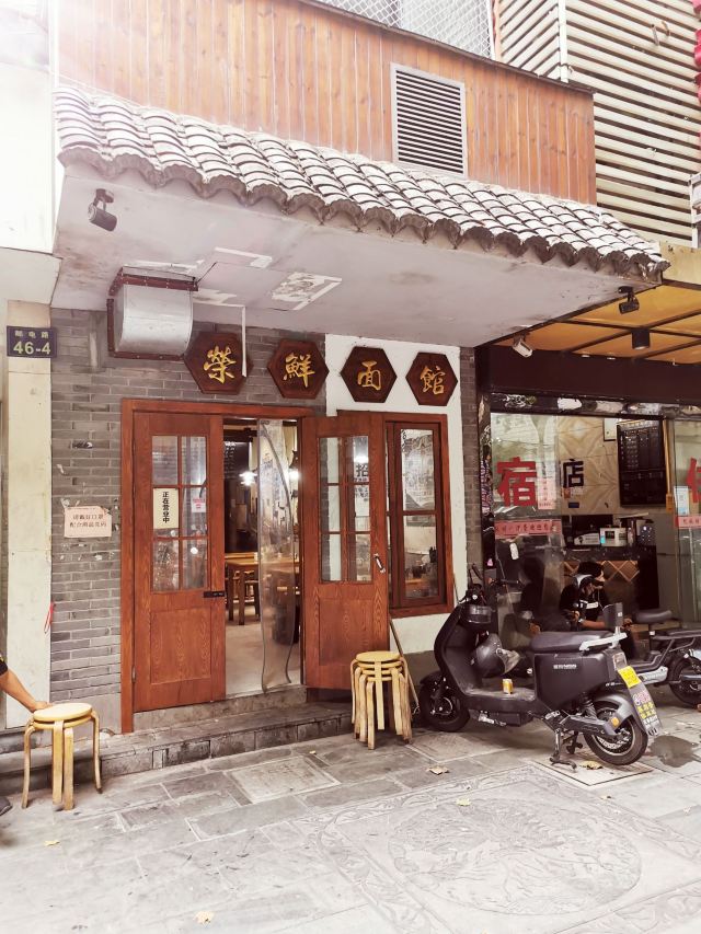 平安夜的蚊子荣鲜面馆,邮电路46号 🚗交通 地铁一号线龙翔桥D1出口 🏖️环境布置 浣纱路上,一家小小的老店。青砖黛瓦木门,“荣鲜面馆”招牌,十分亮眼。走入店里,仿佛回到记忆里的童年。水墨彩绘,老底子石板路老房子,充满江南水韵。老式吊灯安静的灯光,令人沉浸回忆。餐具也是个性定制,独特精美。 💁服务态度 生意好的老店,服务态度一直一般般哦。 🍜美食推荐 |茄汁拌川^青瓷装着大碗面条,细长柔韧的面条,被酸甜浓郁的茄汁包裹,每一口都开胃爽口。荣鲜面馆,不止鲜还有酸甜。 |千张包^点单后现做,需要等待。千张皮薄柔韧,肉馅细腻爽口。千张包吸足了盘底的汤汁,鲜美入味,与众不同。 📌贴心TIPS 营业时间:9:00-20:00 人均消费:30元 荣鲜面馆,不止鲜还有酸甜。