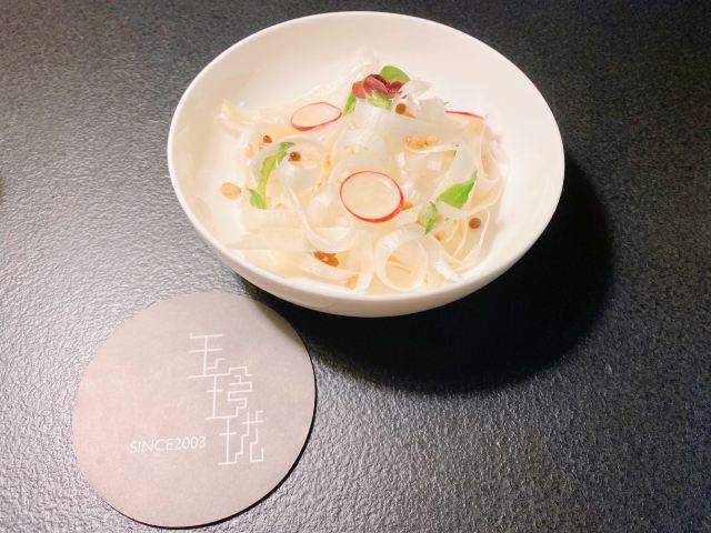 Yeechino犹如一个大片,没有喧染,就悄然绽放。的确,玉玲珑在杭城餐饮界的口碑可以与宴西湖媲美的。而且与宴西湖不同的是,它的小资!宴西湖是大佬们比阔的场所,而玉玲珑则是小情人情投意合的归宿。现在巧了,就如一对夫妻相聚,玉玲珑也搬入了黄龙饭店二号楼,格调一如既往的高雅,只是感觉多了些古典风。大厅需要从过道一直绕行到最后,就如一场电影,大佬总是出现在最先,群众演员往往是铺垫,三排十余张的座位显得有些局促,略显不足,菜品依旧,如华涎之泌,精致富有魅力。