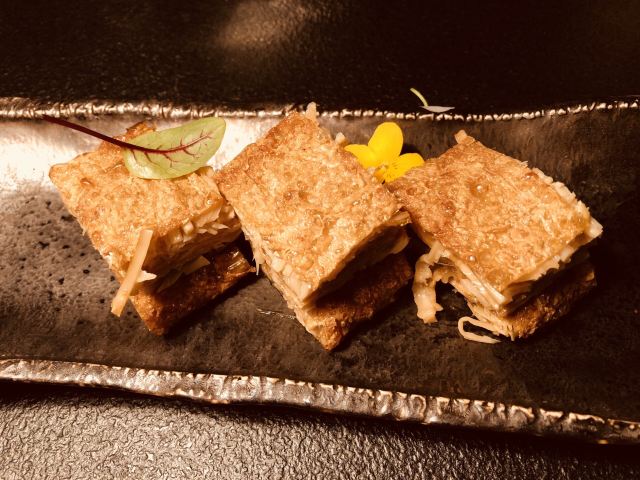 招牌茄子,蟹粉豆腐,奢华的冬瓜,香煎法式肥鹅肝,脆皮鸡,黑松露素菜饺,香煎澳洲和牛,秘制猪手,捞汁花螺,香煎雪花牛肉,松叶蟹,笋壳斑,葱油饼配鹅肝酱