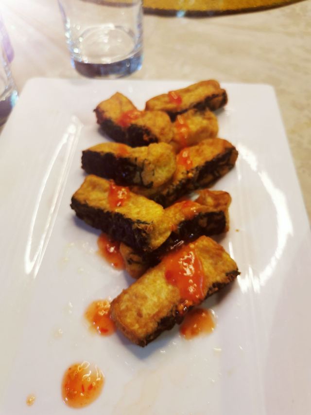 自制黄金豆腐,抹茶虾仁,油爆虾,鸡汁金条豆腐,梭子蟹蒸蛋,绿茶奇妙虾,欢喜红袍肉,虫草养生汤,茶点,酒酿馒头,发糕,清蒸笋壳鱼