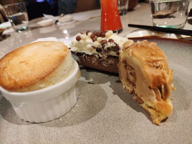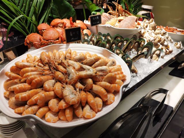 LC大人麻麻无敌江景环抱,美酒美食相伴。 酒不醉人人自醉 周日的晚餐来到尊蓝钱江豪华精选酒店,电梯上到22楼,开门即是静岸自助餐厅。 环境 豪华大气,沿江有露天餐位,吹着钱塘江的风,赏着璀璨的江景,这独一份的享受来自静岸自助餐厅。 菜品 自助餐菜品丰富,分别有海鲜刺身,甜品饮料,烧烤明档,各色面食,红酒米酒,还有新推的杭帮菜区。 当然这个季节,首推的是蒸大闸蟹和熟醉大闸蟹。这一餐自助体验,当属熟醉大闸蟹最为惊艳,花雕酒香带着话梅味,整个醉蟹相当入味,膏肥肉厚,回味绵长。 特别制作的鹅肝吐司,鹅肝超级肥嫩,满口油嫩嫩的,配的吐司烤得脆脆的,中和一下口感,很不错的。 海鲜刺身品种较多,一边有小哥哥及时补货,所以新鲜品质有保证。三文鱼,黄狮鱼,金烧枪鱼口感油润可口。还吃了长脚蟹,蟹肉还蛮多的。 烧烤明档,“嗞嗞”作响,澳洲M7和牛,香煎比目鱼,羊排各尝了一块,淋了黑胡椒汁的羊排香且鲜嫩,比目鱼也是鲜美,真的很赞,强推。 杭帮菜区域的一道排骨萝卜煲汤,是秋冬季的上佳滋补靓汤,汤色清亮,透着食材的原味,萝卜入口即化,有润肺功效哦! 甜品台非常少女感,色彩亮丽,完美的就餐离不开诱人的甜点。粉红气泡水,现烤的舒芙蕾,特别制作的烤土司冰淇淋,还有一道车轮泡芙,在众多甜品中赢得好评。 静岸自助餐厅环境雅致,餐品和服务再上一层的话,就是最佳的自助餐厅了。