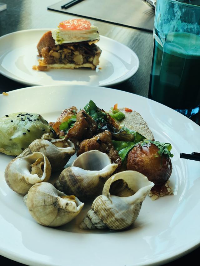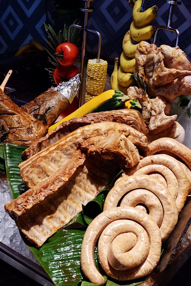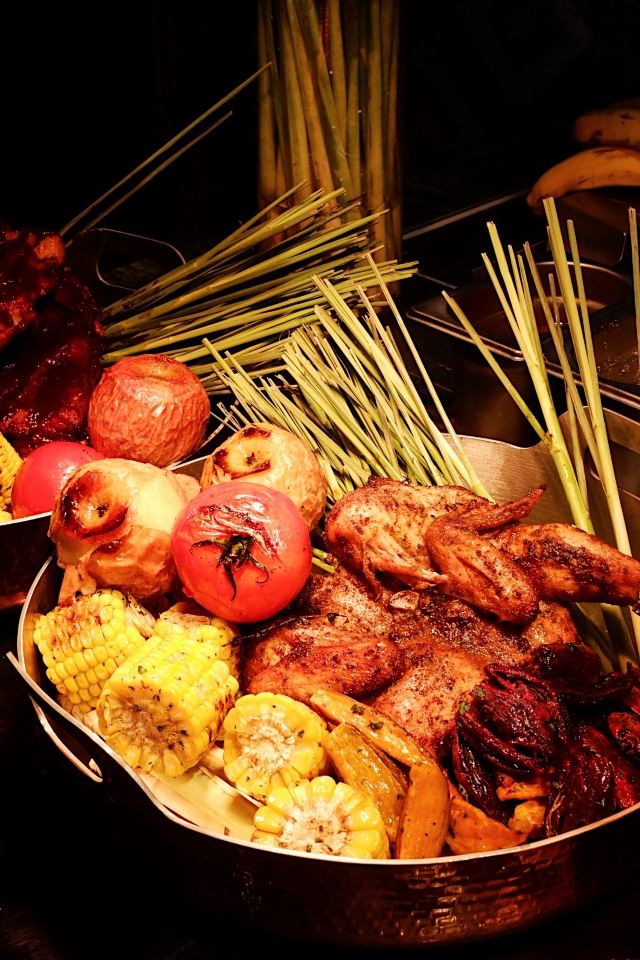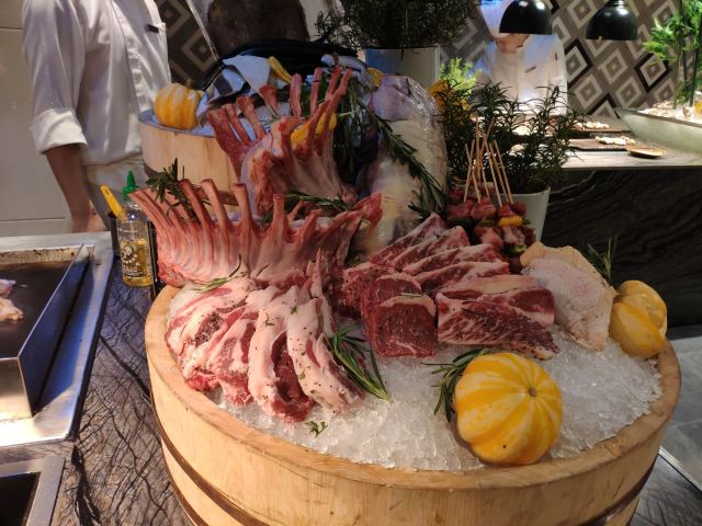 烤鸡皮,法式香草烤羊排,小龙虾,铁板小青龙,香葱味缙云烧饼,果木烤鸭,法式鹅肝,牡丹虾,牛肉拉面,五粮液提拉米苏,三文鱼,黑蒜烤生蚝,提拉米苏,蟹脚,澳洲龙虾