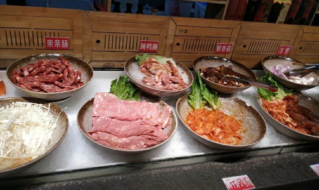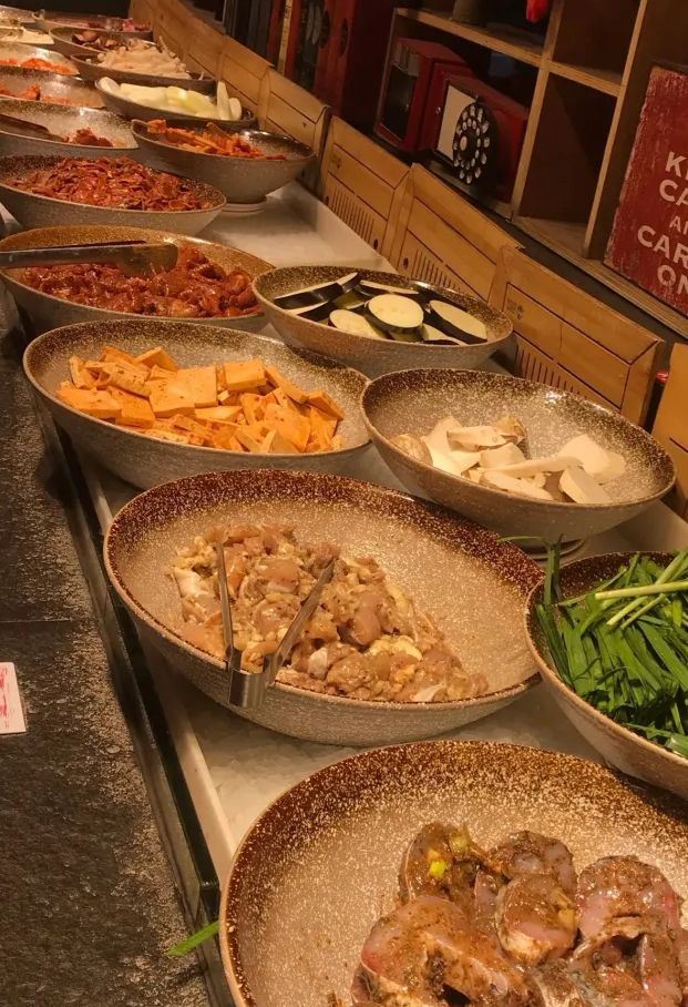 胖子哥哥前阵子说想吃自助餐了,各家酒店对外开放的自助餐厅的就餐氛围是不错,价格有点小贵(不过确实一分价钱一分货)~~~~~~~搜了好久的推荐榜,看到城西这家便宜又实惠的“韩千炉”(团购价只要69元/位),既有火锅还有烧烤,一举两得!最主要的是有无限量供应的肉肉哦~~~~~~走起! 餐厅位于文三路与黄姑山路交叉口,从黄姑山路这头上电梯至3楼便是,门口验证兑换团购券,再付每桌20元的押金,用餐完毕后由服务员签字确认剩余菜品不超过150g的“押金条”再回到前台退款即可。 入座后便可以取餐了,餐厅有用餐时间规定,从打单时间开始算起,2个小时哦! 火锅有清汤和麻辣锅可选,烤炉加热比较慢,趁这个时间差去取餐。用餐过程中自行更换隔油垫纸,如果炭火不足可以让专门负责加碳的叔叔补一下。 从进门后开始的主通道两侧都是取餐柜台,分别是冷菜区、甜品区、熟食区、炸品区、色拉区、饮品区、水果区、冰淇淋区、日料区、蔬菜区、肉类区、海鲜区、热菜区等。 种类还挺丰富的,食材的新鲜度也挺不错的。而且观察了几次,员工补餐也很及时,基本不会出现断档的情况。作为量贩式的自助餐厅,这点值得好多同行借鉴学习呢!! 吃的差不多的时候,负责我们座位这一片区的阿姨过来,确认我们用餐即将结束后,很主动的就帮我们签好退押金的单据了,讲话也很客气,整体都很满意!