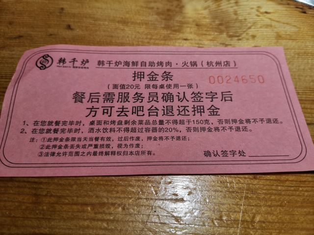 xxy259胖子哥哥前阵子说想吃自助餐了,各家酒店对外开放的自助餐厅的就餐氛围是不错,价格有点小贵(不过确实一分价钱一分货)~~~~~~~搜了好久的推荐榜,看到城西这家便宜又实惠的“韩千炉”(团购价只要69元/位),既有火锅还有烧烤,一举两得!最主要的是有无限量供应的肉肉哦~~~~~~走起! 餐厅位于文三路与黄姑山路交叉口,从黄姑山路这头上电梯至3楼便是,门口验证兑换团购券,再付每桌20元的押金,用餐完毕后由服务员签字确认剩余菜品不超过150g的“押金条”再回到前台退款即可。 入座后便可以取餐了,餐厅有用餐时间规定,从打单时间开始算起,2个小时哦! 火锅有清汤和麻辣锅可选,烤炉加热比较慢,趁这个时间差去取餐。用餐过程中自行更换隔油垫纸,如果炭火不足可以让专门负责加碳的叔叔补一下。 从进门后开始的主通道两侧都是取餐柜台,分别是冷菜区、甜品区、熟食区、炸品区、色拉区、饮品区、水果区、冰淇淋区、日料区、蔬菜区、肉类区、海鲜区、热菜区等。 种类还挺丰富的,食材的新鲜度也挺不错的。而且观察了几次,员工补餐也很及时,基本不会出现断档的情况。作为量贩式的自助餐厅,这点值得好多同行借鉴学习呢!! 吃的差不多的时候,负责我们座位这一片区的阿姨过来,确认我们用餐即将结束后,很主动的就帮我们签好退押金的单据了,讲话也很客气,整体都很满意!