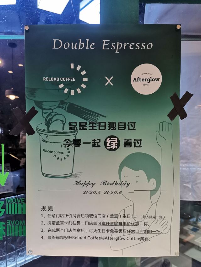 RELOAD COFFEEReload coffee,中山北路274号。 网红绿房子咖啡屋,明艳的绿色,生机盎然。仿佛在寒冬里,寻觅春的轨迹。这个冬天不太冷。 外卖纸盒包装,融入浓浓绿意,绿色吸管交相辉映。色调活泼明快,洋溢文艺气息。 |冰拿铁^咖啡浓郁,奶香十足,层次分明,冰爽丝滑。 Reload coffee,心头一抹绿。