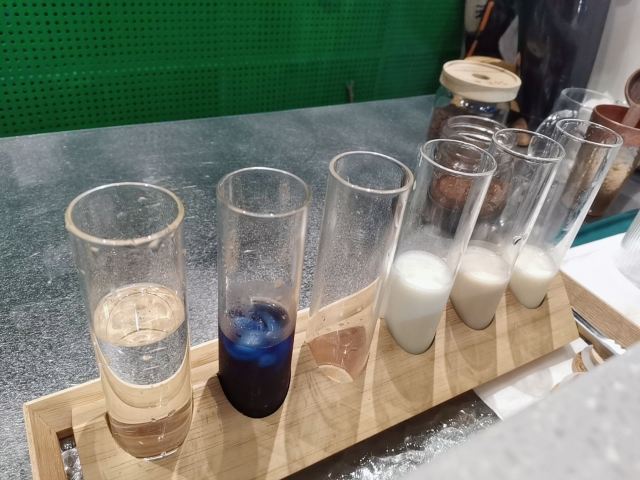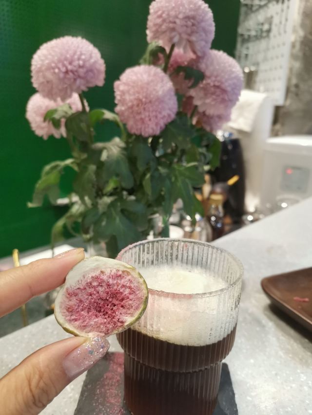 xxy259三刷Reload——让一个不爱喝咖啡的人爱上一家店的奇妙之旅~~~~~~~ 一年的沉淀,让Reload更受“迷妹们”的追捧,原来小小的店铺超负荷工作了一年后,于2020年的夏天在原址不远处扩大了两倍店面,炎热的夏天,绿绿的Reload让人感觉一阵清新和眼前一亮! 在特殊的520的日子,约了闺蜜小坐,点了一众好评的“颜王”——憾夏(52),坐在吧台的位子全程“欣赏”制作过程,一边享受着用蜜桃乌龙茶泡埃塞俄比亚的“瑰夏冷萃”飘出的阵阵香味,一边看着陆续加入的菠萝汁原液和菠萝果肉风味的泡沫奶盖,接下来的“妙手回春”,是取半颗无花果干,手工研磨出粉色的果芯,再筛上一办的奶盖,最后沿着杯口放上另半颗无花果干,这是一种怎样的“犹抱琵琶半遮面”的娇羞~~~~~~ 进入6月,眨眼就是闺蜜的生日,又一次约在了这家“神仙小店”。才半个多月的功夫,菜单竟然就有“颠覆性”的更新,不爱咖啡星人再一次拜倒在了3款新品的“石榴裙”下,Emmmm,无法自拔的那种…… 咖啡实验室,起初因为喜欢蝶豆花的蓝紫色而对它“动了情”,而当知道制作的亮点是“试管”的创意后,更笃定的确定了这杯“Mr. Right”! 看着老板搅拌了很久的Coffee 400后,正式开始“试管试验”喽~~~~~~~倒入冰淇淋口感的水牛奶和谷物纤维的燕麦牛奶后,加入自制的蝶豆花冰块,再加入提纯的牛乳制品——冰博克炼奶,中间层是冷泡过的蝶豆花汁,最后用浓稠的Coffee 400做顶,完成! 这道咖啡口感层次很丰富,入口微酸的浓咖啡,中和了三合一的奶味,口感又有了极大的转折,好吧,品尝后大声宣告一下“咖啡实验”成功!