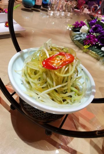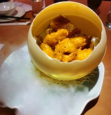 珊汁沙律大虾,石锅海胆豆腐,龙井清泉小牛肉,温式黄鱼烧年糕,精品果木烤鸭,爆炒小公鸡