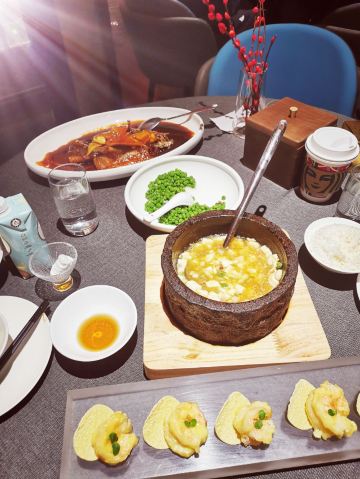 柒园,地址延安路258号湖滨银泰C区4F 🚗交通 一号线龙翔桥D1出口 🏖️环境布置 柒园,创意杭帮菜,精致30年。湖滨银泰店的环境,宽敞大气,精致优雅,又不失时尚格调。暗黑色系里,蕴含江南古典元素,椅子等湖蓝色元素贯穿着,清新明快。工作日生意不错,大厅几乎满座,得益于柒园最近超级给力的折扣活动。人均几十元,就能把原先人均过百的招牌菜尝遍。 💁服务态度 柒园,可以算是目前市场上少见的,仍然人工点单的餐厅。服务态度是不错,不过就餐高峰,顾客满座,效率难免有所耽误。不过目前人均几十元,性价比高,也可以理解。 🍜美食推荐 |珊汁沙律大虾^招牌推荐,颜值经典。虾个头超级饱满,咀嚼Q弹紧实,伴着芥末沙律酱,以及底部的薯片。入口惊艳,鲜美爽脆,爱不释口。 |石锅海胆豆腐^石锅里滚着热腾腾的豆腐,冬日里充满了温暖。金灿灿的石锅豆腐,让人一看就垂涎欲滴。海胆嫩滑,蟹粉鲜美,豆腐细腻润滑。再加点米醋,一碗下肚,元气满满。 |温式黄鱼烧年糕^超大一条黄鱼,赤油浓酱,没什么腥味。诸暨年糕,切成薄片,吸收了黄鱼的鲜味,咀嚼鲜甜软糯。 |云腿昆明小豌豆^绿油油的,清甜可口,清新解腻。 📌贴心TIPS 营业时间:11:00-15:00 16:30-21:30 人均消费:125元 柒园,创意杭帮菜,精致30年。