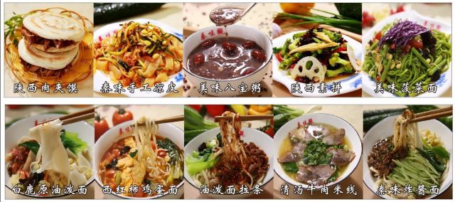 白鹿原油泼面,特色麻辣米线,馋嘴烩麻食,秘制凉拌面,精品岐山臊子汤面,凉拌菠菜面,陕西羊肉泡馍,手撕葱油饼,大秦油泼面优胜奖,肉夹馍