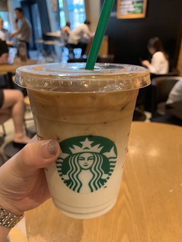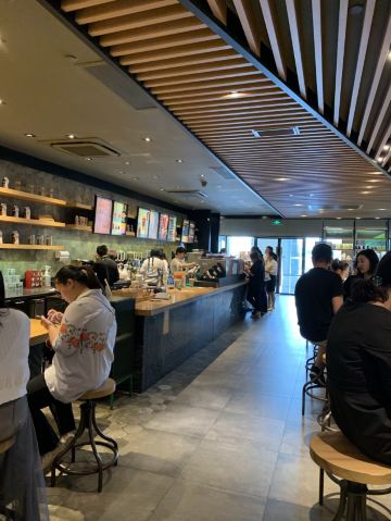 有一张星巴克的赠券,路过这家星巴克就进去兑换了,正好碰到周五有广发卡买一送一的活动,好多人在排队,一杯焦糖玛奇朵,味道甜甜的,是我比较喜欢的口味,对于星巴克新出的那几款饮料,尝试过后发现真的不怎么好喝,还是咖啡味道更适合我的口味