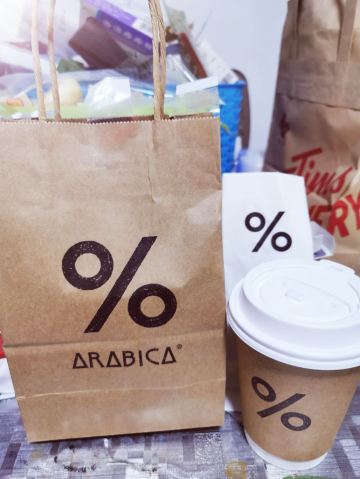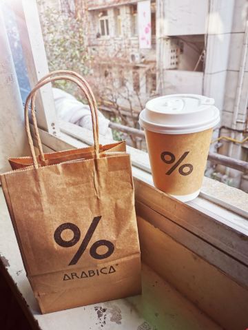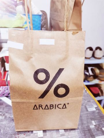 %Arabica,嘉里中心1F。 去年yiqing期间开业,生意火爆,排队热潮,引爆眼球。一年多过去了,作为网红咖啡店,热度不减 价格偏高,也是卖点。养伤期间,为了让心情好一些,决心下了血本,点一杯|西班牙咖啡^。 %,终于等到你。 打包袋清新简洁,性冷淡风,%logo,让人第一眼就记住品牌形象,不同凡响。 |西班牙咖啡^招牌咖啡,口感清淡,加了炼乳,奶香浓郁。性价比不高,难得尝一回。 %Arabica,终于等到你。