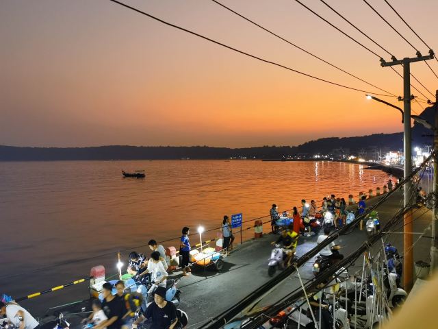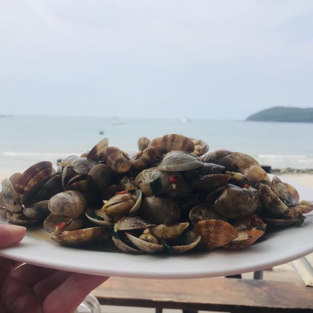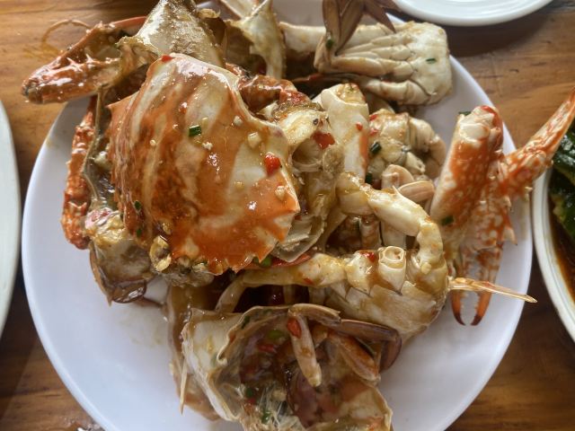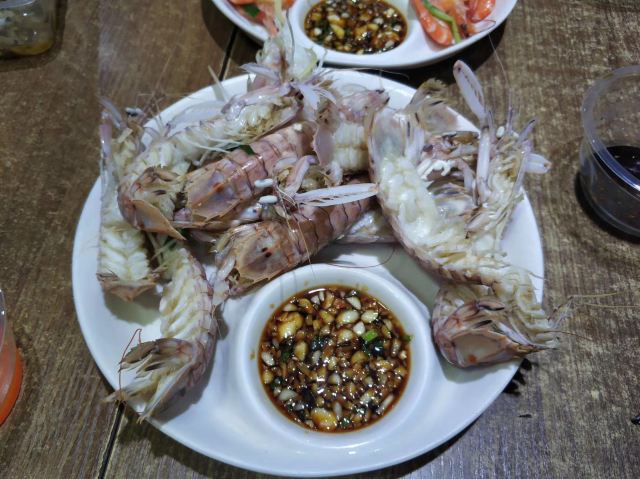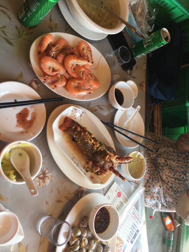 去年5.23去玩的,蜜月旅行,三天中晚饭都在她家吃,没有一点夸张,胖胖姐姐老板特别好,给你检查海鲜是否受骗上当买回来死的、味道棒的要命、中午胖胖姐姐老板还会给你拿水冲小电摩降温,夜晚坐在二楼吹着海风吃东西,真的不要太棒上图证明(图图是门口的风景)