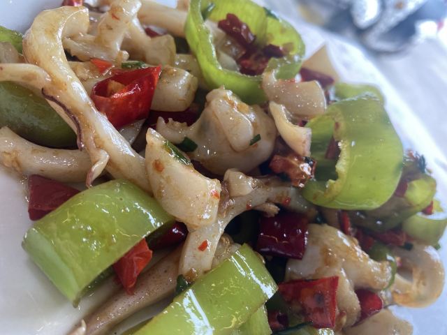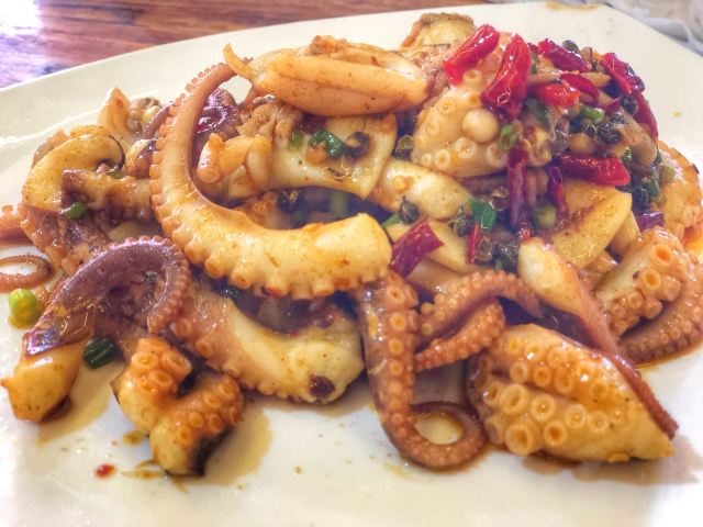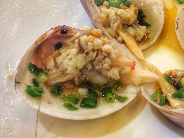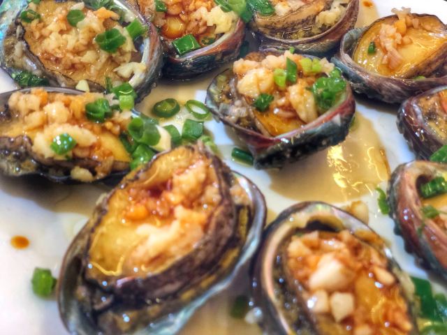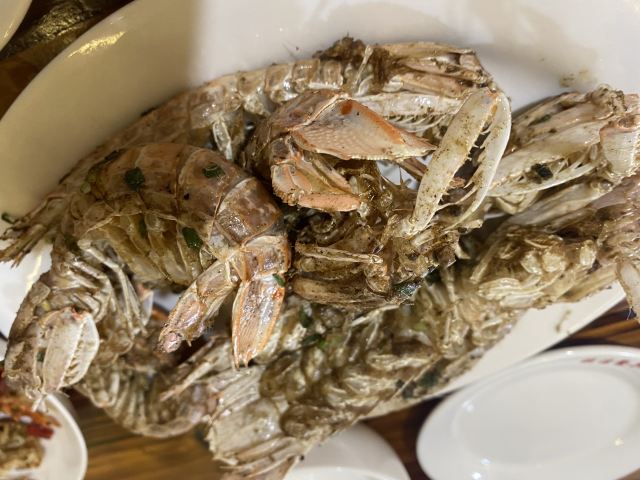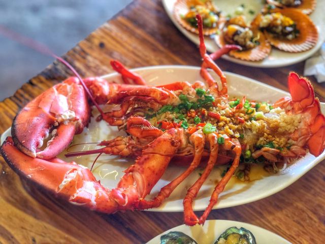 酱爆鱿鱼圈,秘制蒸鲍鱼,香爆花甲,粉丝扇贝,香辣蟹,香蕉猪回锅肉,蕃茄炒土豆片,清蒸大龙虾(加工费)
