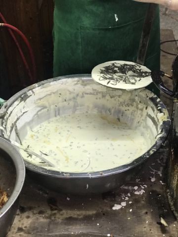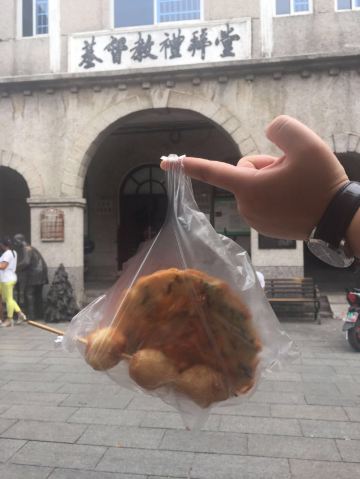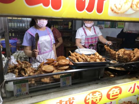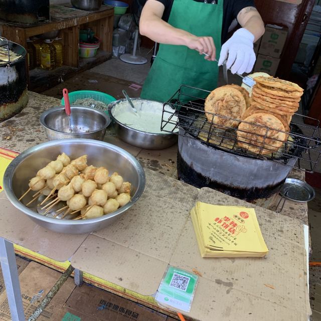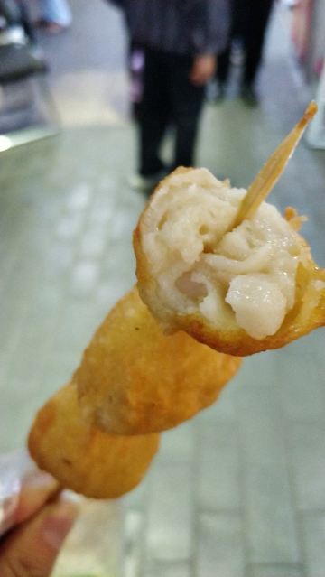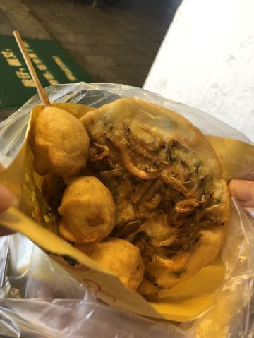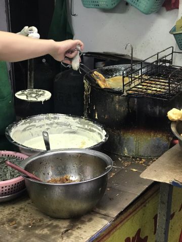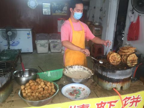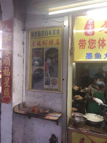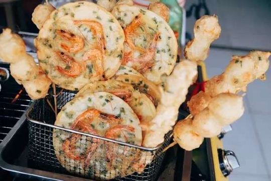 传说中好吃到爆的虾饼,老街上的人气摊位,据说还上过《舌尖上的中国》。虾饼是用小虾炸制,活蹦乱跳的虾蘸上粉浆,落入滚烫的油锅里现炸现吃,口感香脆,鲜美异常。