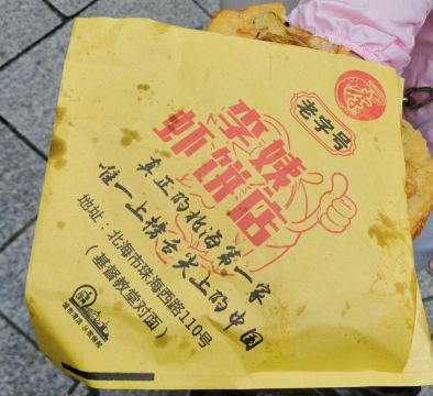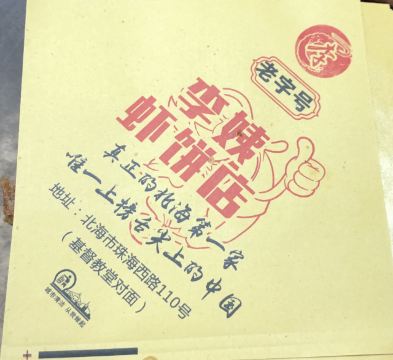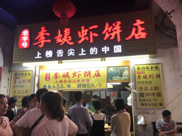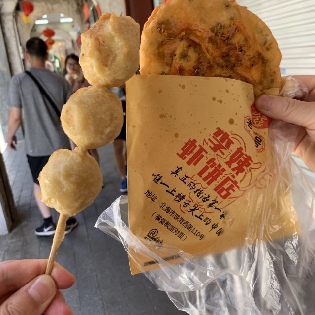这条路上有很多山寨的李姨虾饼店,一定要认准图9的门面!这家上过《舌尖上的中国》,绝对正宗。店里只卖两种东西:虾饼和墨鱼丸,都是5元一个。虾饼可以直接吃,墨鱼丸蘸酸甜汁超好吃,我一次能吃3串!地址:北海老街正门往里走几百米,在左边,