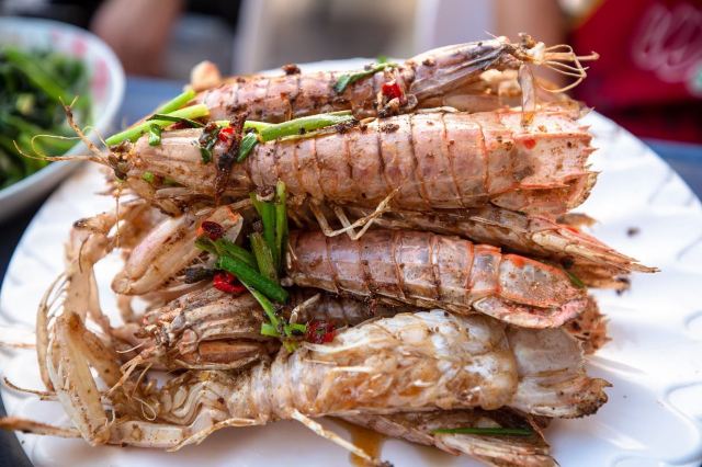 烤生蚝,葱爆兰花蟹,鲍鱼,明虾,爆炒沙虫,爆炒鱿鱼,大海螺,蒜蓉蒸鲜贝鲜活,石斑鱼,椒盐皮皮虾鲜活,黑蒜烤生蚝,椒盐皮皮虾,清蒸石斑鱼,超海螺(任何一种),阿明海鲜,炒花甲,丝瓜虾滑汤,海鲜