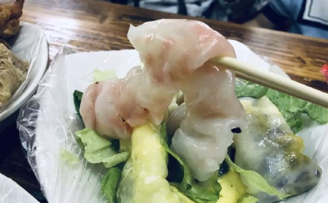经过改良的越南口味卷粉,现场制作,像水晶般的薄薄的米皮,裹着木耳、猪肉沫等,配上酸甜汁、生菜与薄荷叶,根据口味添加酱料,味道真心好吃。