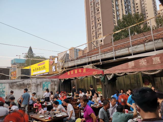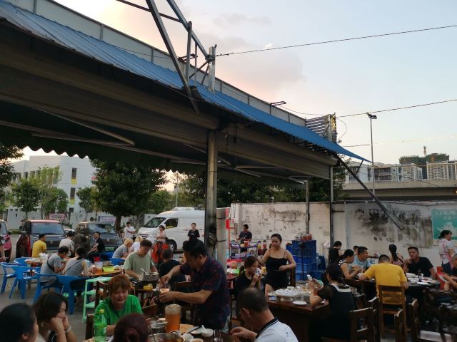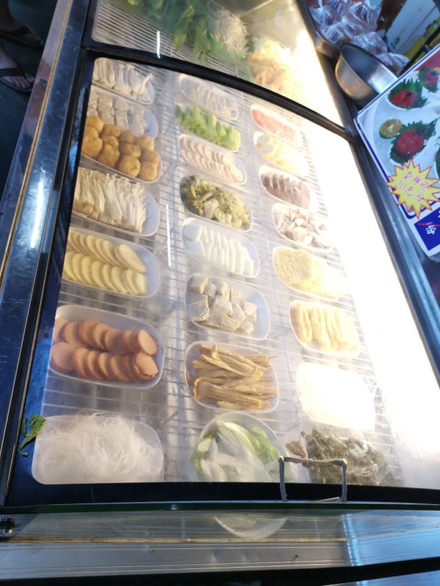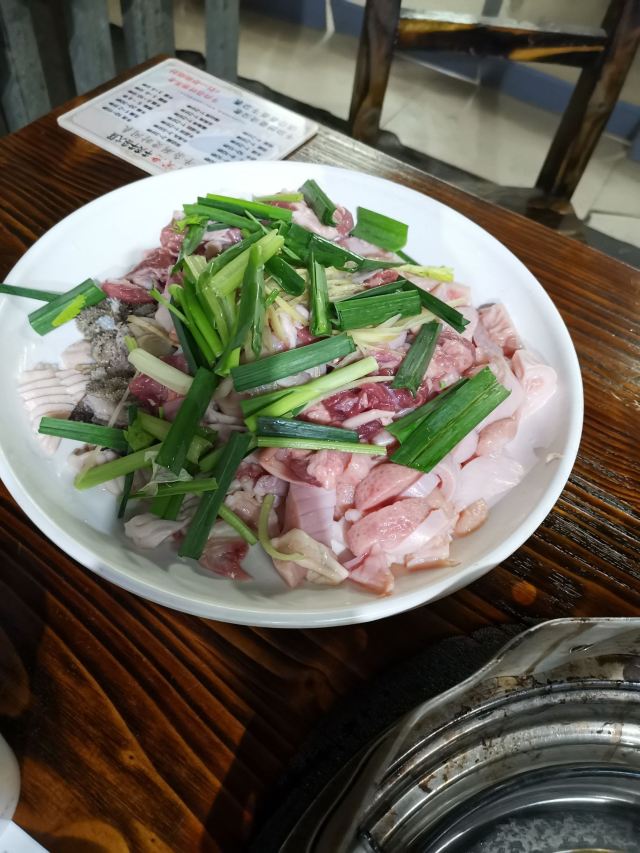 一个露天大院子里摆满了桌子,其实是有收缩棚子的,下雨也可以拉开。 牛杂卫生状况实在让人担忧,排队的时候一直看着苍蝇在冷藏柜里飞,这块肉吃两口那块肠吃两口,负责给客人选牛杂的店员看见苍蝇在叮着牛杂吃,也丝毫没有想把它赶出冷藏柜的意思。如果介意环境和食材的卫生状况,一定要谨慎,否则会引起巨大不适。 7.30以前排队很长,之后就基本上没什么人排队了,因为牛杂也卖得差不多了,只有烧烤了。 很多牛杂名字都是第一次听说呢,比如天梯,嘴角肉。 点了原味锅涮着吃,配的酸辣蘸料让牛杂熠熠生辉。完全不需要加辣椒油,酸辣蘸料就足够了。 两个人点了2.3斤牛杂,没有添加任何,吃到最后还是觉得好撑啊,分量真心足。 可以开纸发票。