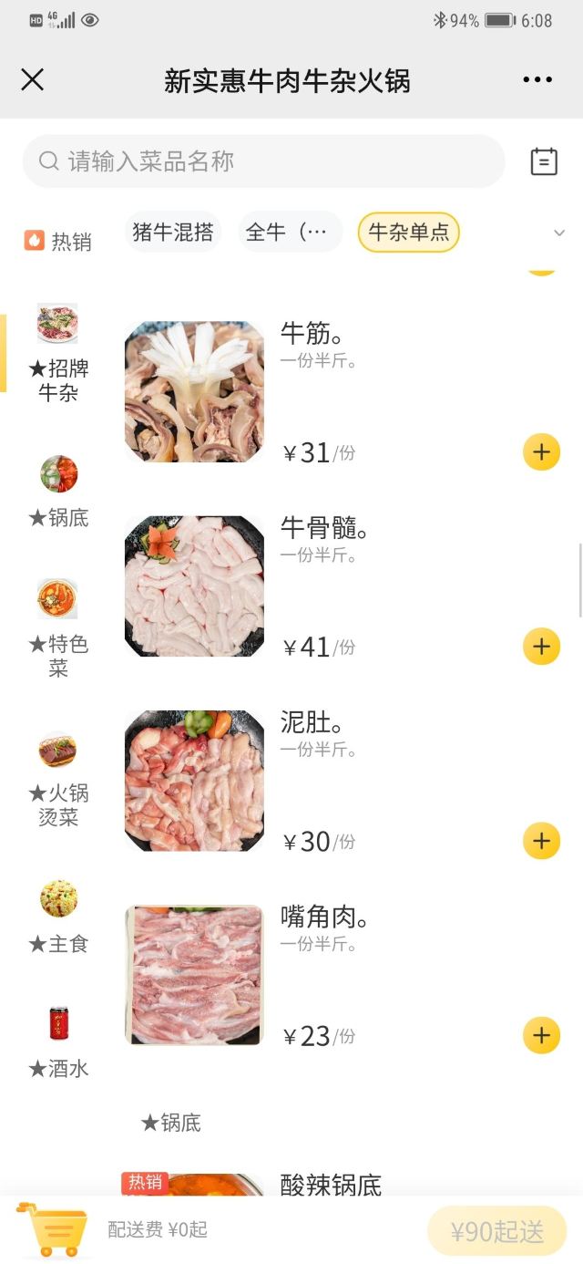 招牌凉拌牛杂,酸汤牛杂,隔山肉,牛舌,高压锅生蚝,砂锅腊肉饭,酸辣锅底,肥牛,牛骨髓,牛杂,牛肉,水豆腐,鱼籽生牛,牛肉包泡椒