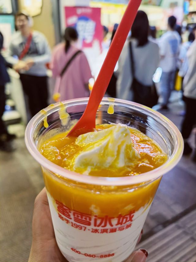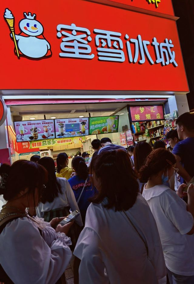 蜜雪冰城真的生意很好,特别是这家,在五星步行街上,晚上路过都是排队的人,有点看不懂啊。 有句说句,蜜雪冰城价格是便宜的,冰淇淋吃吃还可以。 不过这家服务员不行,一副爱等不等的样子,吃个冷饮等这么久谁高兴。