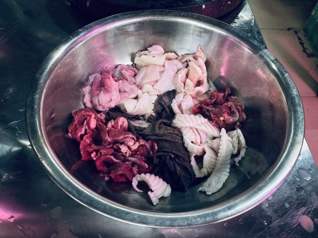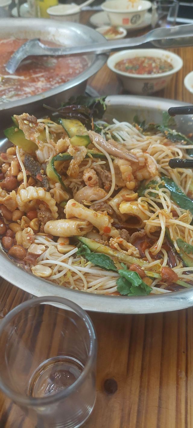 今天在柳州汽车厂出差,住屏山书香世家酒店,中午我朋友带我去吃当地非常有名的牛杂《天山路牛杂》,柳州除了螺丝粉之外还是有很多好吃的东西。朋友介绍这家牛杂已经开了几十年了,口味一直很好. 牛杂有两种,一种是凉拌牛杂,您点好牛杂后,老板拿去处理,拌好的牛杂拿出来。另一种是生料给您,给一锅清汤您自己算着吃。 【口味】这一家的牛杂真的非常好吃,特别是凉拌牛杂,一点都没有骚气,有一点果香和柠檬乡,很多花生米和紫苏叶,有点酸带甜的,牛杂很干净脆脆的。 水锅用的是酸辣的汤底,烫最好吃的是牛脑,他家的蘸两款都好吃,怕上火所以用的酸辣的。 【环境】市井美食不讲究环境,环境土土的柳州老店的味道。 【服务】都是老阿姨,店里生意很好,所以人家一点都不在乎