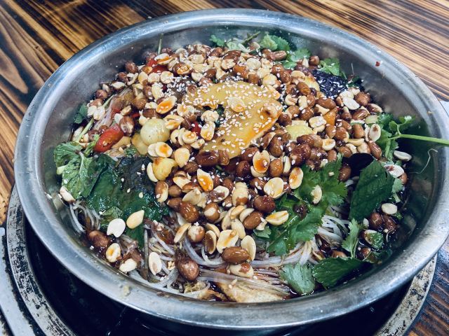 雪松苏今天在柳州汽车厂出差,住屏山书香世家酒店,中午我朋友带我去吃当地非常有名的牛杂《天山路牛杂》,柳州除了螺丝粉之外还是有很多好吃的东西。朋友介绍这家牛杂已经开了几十年了,口味一直很好. 牛杂有两种,一种是凉拌牛杂,您点好牛杂后,老板拿去处理,拌好的牛杂拿出来。另一种是生料给您,给一锅清汤您自己算着吃。 【口味】这一家的牛杂真的非常好吃,特别是凉拌牛杂,一点都没有骚气,有一点果香和柠檬乡,很多花生米和紫苏叶,有点酸带甜的,牛杂很干净脆脆的。 水锅用的是酸辣的汤底,烫最好吃的是牛脑,他家的蘸两款都好吃,怕上火所以用的酸辣的。 【环境】市井美食不讲究环境,环境土土的柳州老店的味道。 【服务】都是老阿姨,店里生意很好,所以人家一点都不在乎