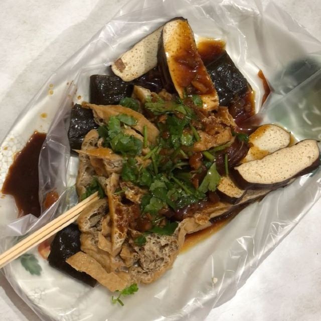 逛大溪老街看到的老店--招牌写着豆干元祖 门口就有卤味现煮现卖 自选后可以内用也可以外带 香菜、蒜蓉酱油、辣椒口味任选 海带、黑豆干、百叶,品种蛮多的 豆干口味蛮传统的,喜欢古早味的可以尝试 店内还有瓶装的酱菜