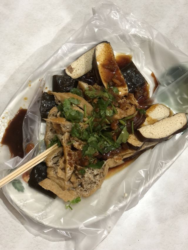 沒吃過的要去試一試! 熱的豆乾、素雞、干欄、素腸等, 價格平價。