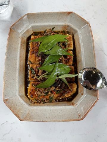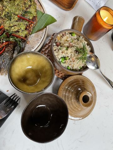 云南松露油野菌烩饭,灼烤伊比利亚猪肋排配酸梅甜酱,黑毛猪佐烤菠萝,香煎爆浆豆腐,南都斯辣酱烤春鸡,提拉米苏,灼烤伊比利亚猪肋排,香煎洱海鱼配香菜青酱,包烧菌子,暹罗手打奶茶,爆浆豆腐配鸡纵肉酱,炭烤高山黑毛猪配香水菠萝,黑松露薯条