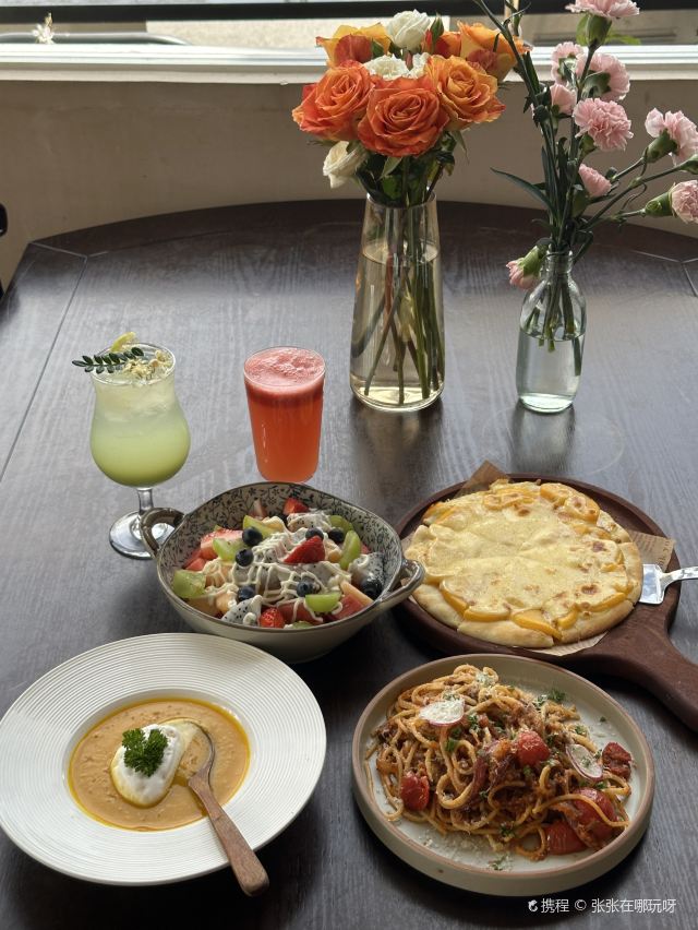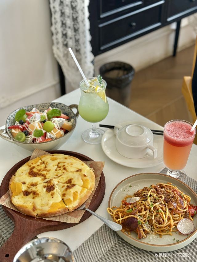 李不短欣_雨天的大理S湾 找到一处把浪漫刻进骨子里的餐吧 绿植与复古喷泉勾勒出欧式秘密花园的模样 细雨轻落 更添了几分朦胧的诗意 随便往拱门绿植区一靠 氛围感大片直接拿捏📸 - zui绝的是海景位 雨天的洱海裹着薄雾 S湾的浪声被雨丝柔化 仿佛时间都静止了 🍕黄桃披萨 香甜的黄桃与浓郁芝士在舌尖碰撞 仿佛把洱海的清甜都融了进去 🍝牛肉酱意面 酱香裹挟着意面的劲道 每一口都是治愈雨天的暖意 感觉整片湖光山色都成了这餐食的衬景 清爽与美味的适配度直接拉满💯 - 下午在花园拍组仙气飘飘的大片 大理的雨天清单里 它必须稳居C位! #大理S湾 #茉里海畔 #雨天治愈 #黄桃披萨 #牛肉酱意面 #氛围感餐厅 #大理美食