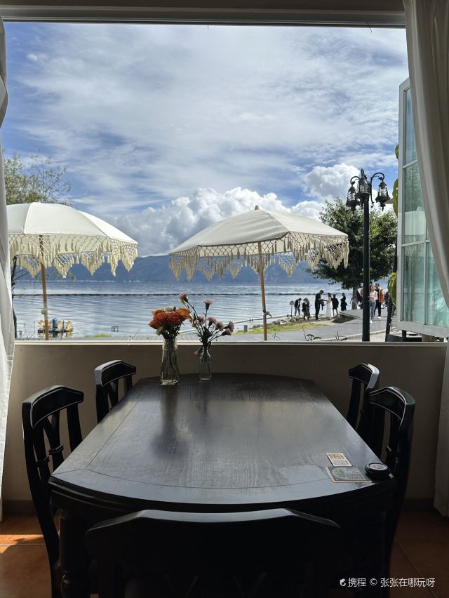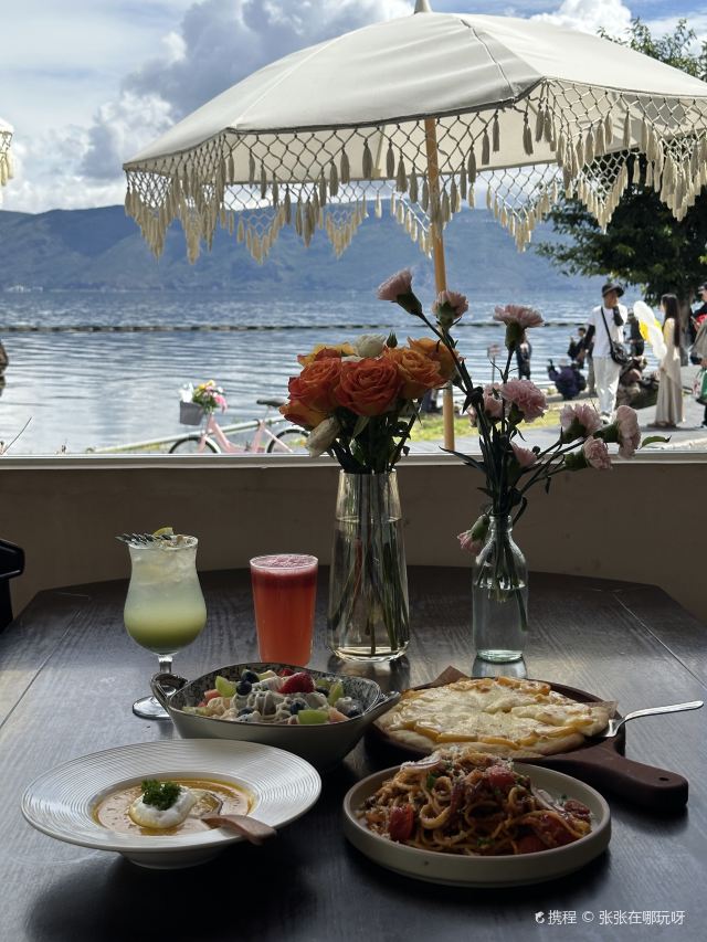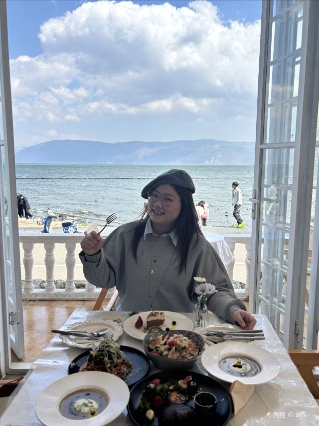 zws-真是太爱了! 被誉为“位于S湾最美餐厅”的它,不仅拥有法式餐厅的优雅与精致,更像是一座坐落于海边的花园,让人仿佛置身于莫奈的画作之中。水池周围鲜花簇拥,每一处都是拍照打卡的绝佳位置,让你的朋友圈瞬间被问爆:“这是在哪里?不在国外,就在大理S湾!” 地处洱海S湾,跟洱海的风景很配,很有氛围感,拍照很出片!! 餐品丰富,涵盖了中餐,西餐,特色融合菜,下午茶,咖啡和各类果汁饮品等,食材新鲜,菜品味道一流,带给味蕾极致的体验和感受! 🌄打卡位置推荐: ✔️P1位于餐厅左侧玻璃房走廊,在院子里斜拍,用绿植遮挡前景 氛围感一下就上来了 ✔️P2,3,4都位于餐厅右侧二楼平台,找到合适的角度很容易就能拍出桌面和洱海相接 当然还有整个大理网红S湾的大片 ✔️P5位于三楼一线海景客房 拍日出日落 海景 光线好的时候都很出片 ✔️P6位于餐厅小院靠海餐桌 咖啡前台3倍焦距拍摄 超有在海边的氛围感