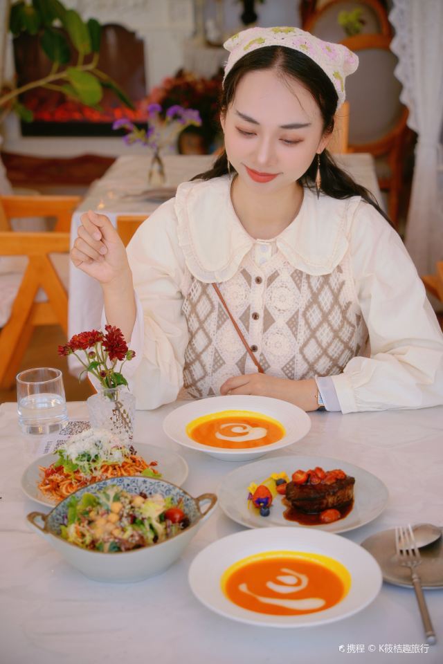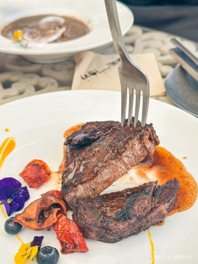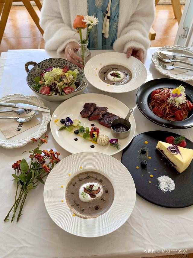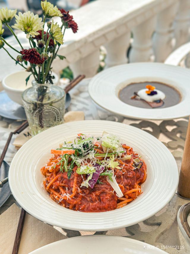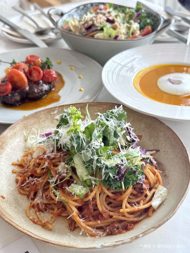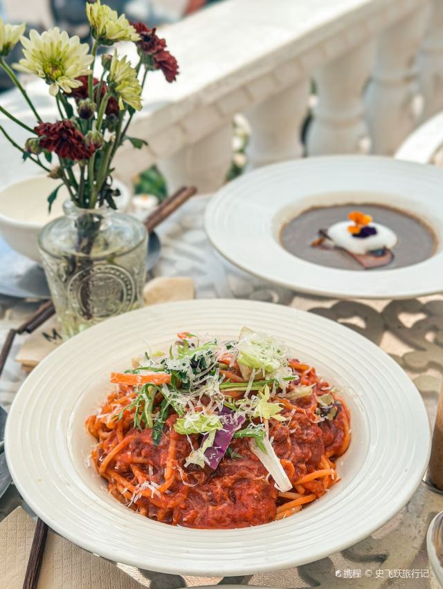 K筱桔趣旅行📸每一位去大理旅行的朋友,都不会错过S湾的拍摄机位 🧱墙裂推荐拍摄后,直冲这家花园餐厅! 💙因为这里还藏着另一面的洱海 - 🎠走进餐厅仿佛遇见爱丽丝梦游的仙境:法式喷泉、白色流苏帐篷、五彩斑斓的鲜花绿植、蕾丝桌布……环境也太美了吧 👁️坐在临窗位置往外看,就能把洱海装进相框里,连绵苍山+平静洱海,日落时分敲级浪漫的 🍽️点上一份浪漫双人套餐,美食、美景真的很难不爱啊! - 🥩黑椒厚切炙烤黑椒牛排 🔸海景、日落+牛排可是法式浪漫的标配~大口炫牛排,好好吃噢! 🔸美景佳肴的当下,我太幸福啦~ 🍝肉酱意粉 🔸份量2人份hin足,喜欢酸甜肉酱,伴着意粉猴猴食 🔍茉里海畔MOLI·海景花园餐厅Bistro(S湾店) 📍大理市银桥镇磻溪村10组 ⏳9:00~22:00 #美食林试吃官 #美食旬味会 #浪漫约会餐厅 #景观餐厅 #大理美食