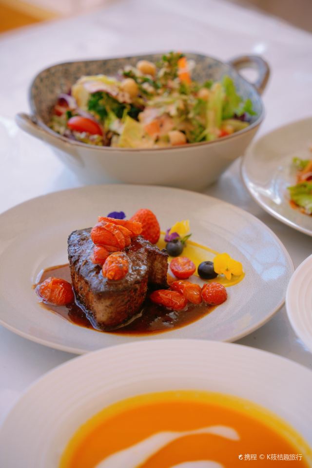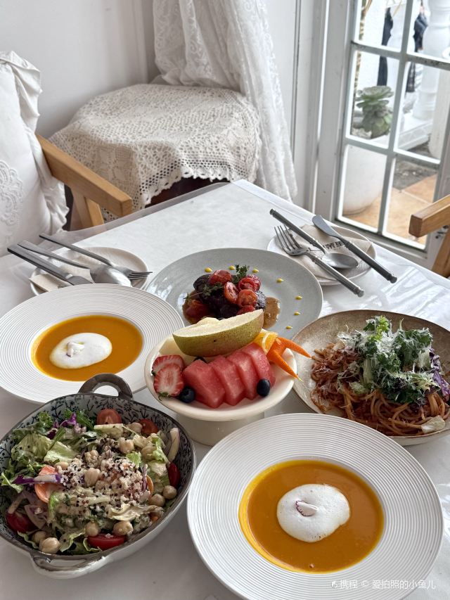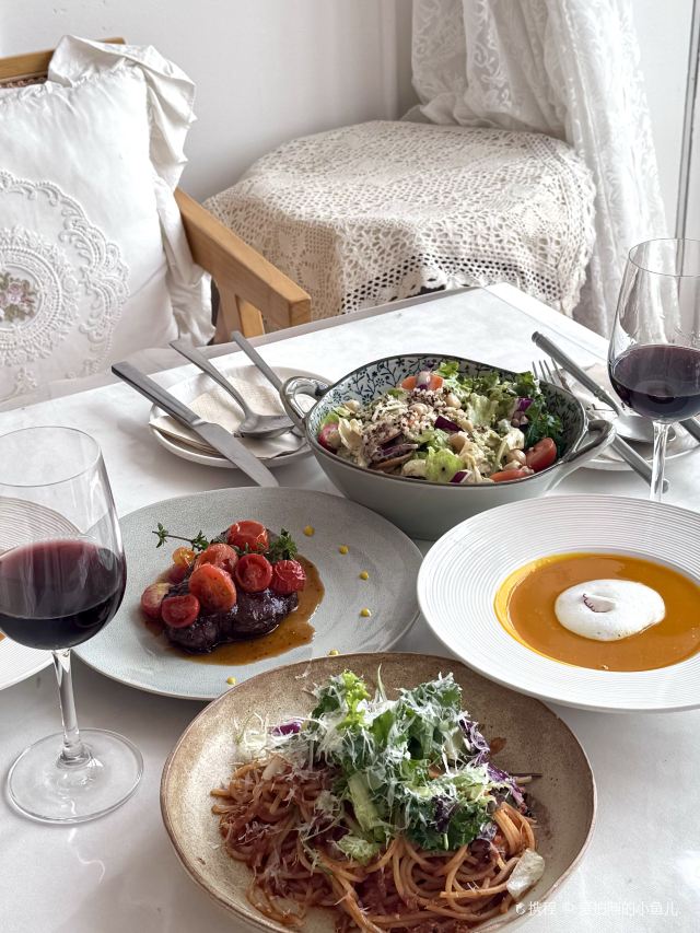 爱拍照的小鱼儿和闺蜜一起环游洱海 意外发现了这家海景餐厅🍽️ 🏠餐厅内,西餐、中餐与咖啡下午茶一应俱全,每道菜品都透露出高颜值与美味😋物超所值! 这家餐厅的海景特色让人超级惊喜 无论是在位置、装修还是菜品上,都散发出浓厚的海景情怀 菜品精致美味 搭配洱海的绝美景色很惬意~ 黑椒炙烤牛排🥩肉质鲜嫩多汁,口感丰富 除了南瓜羹🥣 意面🍝蔬菜沙拉🥗 再来点红酒搭配,享受和闺蜜的约会时光 📷来大理洱海S湾打卡的集美们逛累了 可以在这里吃饭和下午茶很是不错哦~👍 #我的美食日记 #宝藏餐厅分享 #氛围感餐厅 #法式浪漫 #海景餐厅 #法式餐厅 #大理磻溪s湾 #茉里海畔餐厅 #茉里酒店 #茉里海畔Moli #大理日出