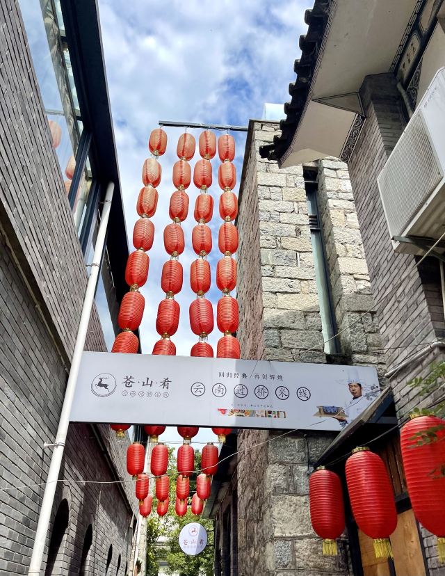 在大理古城,靠近红龙井的一条小巷子里面,有一家“网红”过桥米线店,非常适合拍照打卡,当然菜品也是非常好吃。店员会热情地现场表演操作,滚烫的浓汤瞬间就能让所有的食材都变成熟的。 后面还有一个很漂亮的院子,如果允许楼上是一个非常不错的选择。