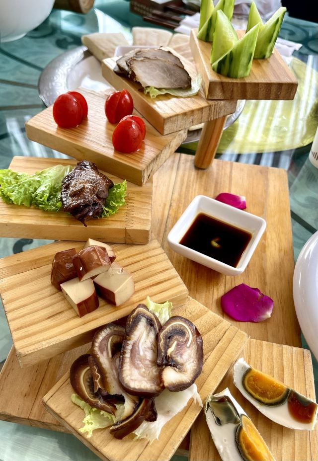 手工鲜玉米粑粑,白族腌菜炒肉,苍山野生菌锅巴,洱海海菜炒芋头,老君山包浆豆腐,白族酸辣鱼,苍山肴汽锅鸡,玫瑰米凉虾,玫瑰酿,苍山秘制牦牛肉,水煮肉片,汽锅鸡,白参煎蛋,压锅双拼,榆人鸡片,菌锅巴,玉米粑粑