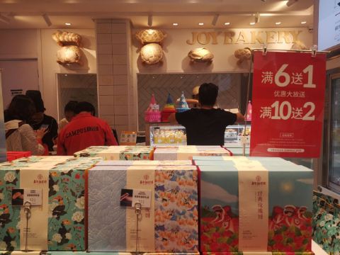 古城所有的嘉华饼屋都是买六送一,买十送二。 同事手太快,抢着买单。 反正最后200块买了七袋。 两个口味的,综合口味的更贵一点。 那里就是不能讲价的,什么买六送二,绝对不会睬你的。