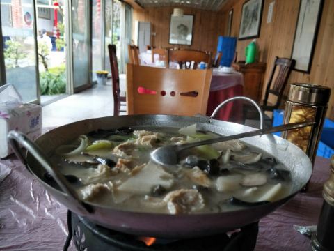 环境不错的一家农家乐,地方满大的,就在国清寺旁边。点菜没有菜单,品种很多,还有野味,做的都是天台的地方菜。
