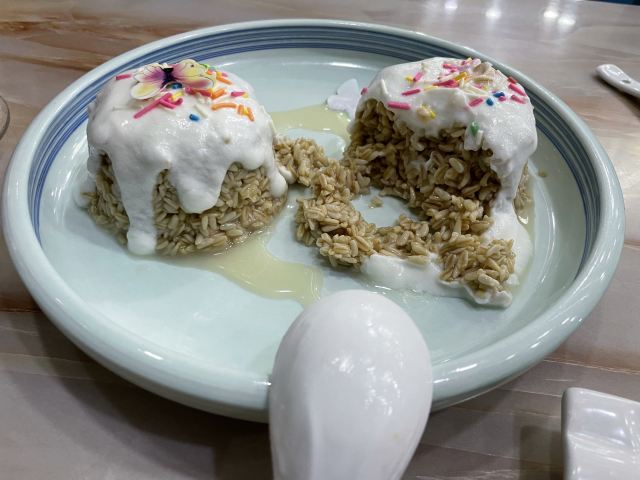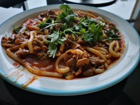 迎着霏霏细雨的傍晚,进入了当天的目的地临夏市。 说实话之前没有听说过这个地方,选择停靠一晚纯是因为当天赶不到兰州,所以作为中转站休息一下,但实际情况却超出了计划。 临夏自古属于交通要道,古代属于藏汉交界处,贸易发达,甘南藏族的很多生活生产物资都是从临夏采购,时至今日,走在街上仍然能看到很多藏族和喇嘛的用品商店。 临夏东乡县的手抓羊肉大名鼎鼎,这也是到临夏的很重要原因,我们选择的是当地有名的二洒手抓羊肉第一分店。临夏不大,饭店位置离我们住的地方很近,北邻大夏河,停车场面积大很方便,我们到的时候已经是8点以后了,所以人不算多,车辆陆续往外走,知道西北这边饭店下班准点,所以到了以后赶快找座位点餐。 一进入大堂,很气派,零点大厅人不多,服务员直接把我们领到二楼了,二楼很大,西北没听说过的城市有如此营业面积的饭店,让我惊奇。上楼以后因为很多餐位还没有收拾出来,就直接把我们领到一个包房里了,很大气啊,就我们两个人。 手抓肉是跑不了了;又点了个麦仁酸奶杨梅,真名字记不住了;主食点了个油香,饭店送了酸萝卜和瓜子。手抓肉就不用说了,很棒,麦仁酸奶杨梅也很好吃,油香也不错,可惜人少,否则可以多点几个菜尝尝了。