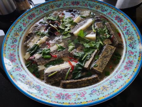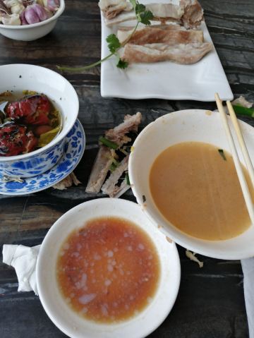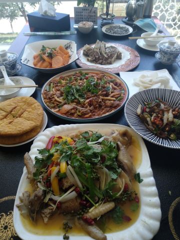 我派大王来巡山迎着霏霏细雨的傍晚,进入了当天的目的地临夏市。 说实话之前没有听说过这个地方,选择停靠一晚纯是因为当天赶不到兰州,所以作为中转站休息一下,但实际情况却超出了计划。 临夏自古属于交通要道,古代属于藏汉交界处,贸易发达,甘南藏族的很多生活生产物资都是从临夏采购,时至今日,走在街上仍然能看到很多藏族和喇嘛的用品商店。 临夏东乡县的手抓羊肉大名鼎鼎,这也是到临夏的很重要原因,我们选择的是当地有名的二洒手抓羊肉第一分店。临夏不大,饭店位置离我们住的地方很近,北邻大夏河,停车场面积大很方便,我们到的时候已经是8点以后了,所以人不算多,车辆陆续往外走,知道西北这边饭店下班准点,所以到了以后赶快找座位点餐。 一进入大堂,很气派,零点大厅人不多,服务员直接把我们领到二楼了,二楼很大,西北没听说过的城市有如此营业面积的饭店,让我惊奇。上楼以后因为很多餐位还没有收拾出来,就直接把我们领到一个包房里了,很大气啊,就我们两个人。 手抓肉是跑不了了;又点了个麦仁酸奶杨梅,真名字记不住了;主食点了个油香,饭店送了酸萝卜和瓜子。手抓肉就不用说了,很棒,麦仁酸奶杨梅也很好吃,油香也不错,可惜人少,否则可以多点几个菜尝尝了。