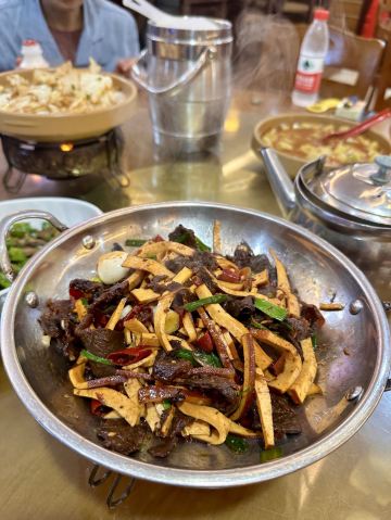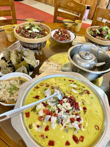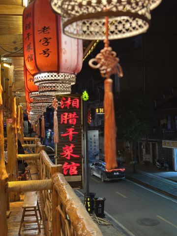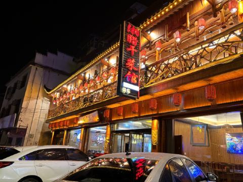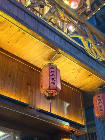 来湘西芙蓉镇,地道的湘菜一定不能错过,而位于镇上不远的这家湘腊干菜馆一定不要错过~ 🍴餐厅:湘腊干菜馆 📌地址:芙蓉镇景区商和街258号 ⏰营业时间:8:30-22:30 💰人均消费:57元 🏠【环境】中式风格的一家餐厅,远远看去,古色古香 🤳【排队】我是晚上8点左右到的,因为时淡季来,人整体都不算多,坐下就开始点菜了 🍱【推荐菜】 1⃣️土家腊肉:特色菜,必点! 2⃣️腊猪大肠:炒的很干,吃起来非常香! 3⃣️米豆腐:芙蓉镇特色,值得尝一尝 4⃣️韭菜炒河虾 整体有些辣,建议下饭吃,这边的菜真的都超级下饭,对于我这样的重庆人来说正合胃口呀 门外是接到,停车不是特别方便,建议在福建酒店那边停好后步行过来