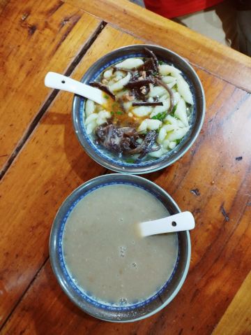芙蓉镇上很出名卖米豆腐的小店,味道很清爽。米豆腐本身比较寡淡,加上汤和萝卜干便有了风味。天热时来碗冰镇的米酒,顿生清凉。