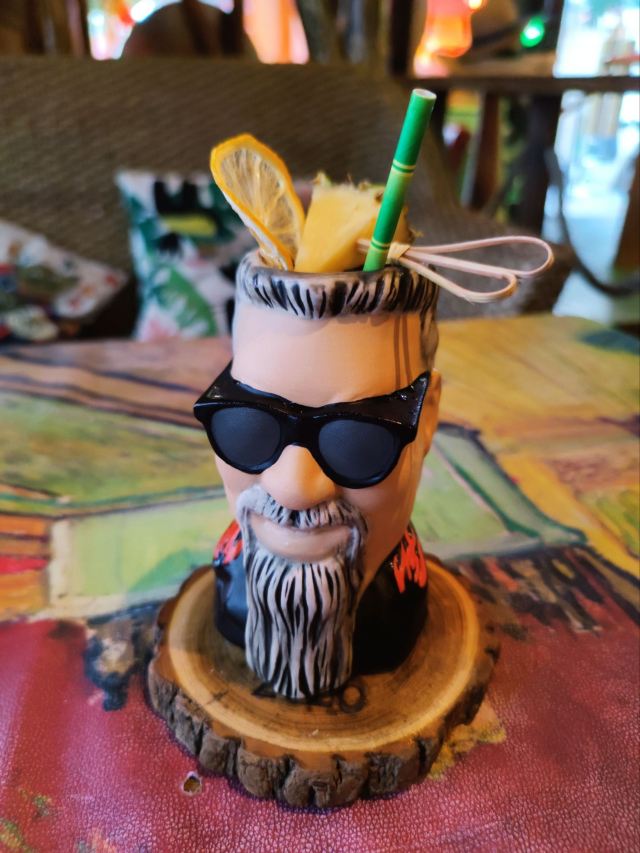 最近的天气真的是热爆了,下班后也没什么胃口,一个人晃悠到了黄兴路岳飞街附近,随便找了家清吧坐坐。可能是去的比较早,店里的客人不怎么多,环境看着还是挺不错的,有种夏威夷风的错觉。它家周末会有驻唱,晚点来可能氛围感会更好些。 简单看了下菜单后,选了杯Zombie,入口味道还行,没有想象中那么狠。听说是烈酒和果汁调配成的,里面有碎冰打成的雪泥,喝着是酒味和果味叠加的口感。这个不要喝太多,最后发现酒劲是慢慢起来的,搭配的烤肠好香。