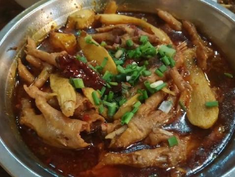 国庆休息的时候到处闲逛,偶然在汉口万象城附近,发现了不太起眼的它家。差不多下午2点左右到的,里面没什么人,环境看着还比较干净,于是随便找了个空桌就坐下了。它家菜单是贴在墙上的,主打各种小吃为主,选择还算比较多的,基本上武汉常见的都有。 由于不怎么饿,就随便选了几份小吃,没有整主食这些。姜辣凤爪看着挺辣,实际吃起来还好,凤爪入口即化的感觉。藕圆带点微甜,蘸辣酱吃还凑合,记得趁热吃,冷了有点硬。牛肉锅贴的肉馅有点干,但味道确实还不错。