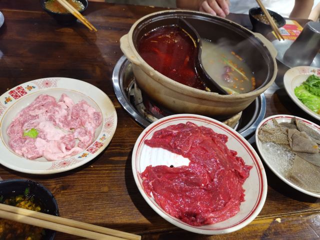 这个老火锅算是新的一种模式了,第一次看用炭火煮的火锅,再配上砂锅来煮,很新颖的模式,就是炭火的火力不能随意调控,煮起来比较费劲,不过味道真的不错,有重庆火锅改良当地版的味道,推荐猪天堂和猪五花