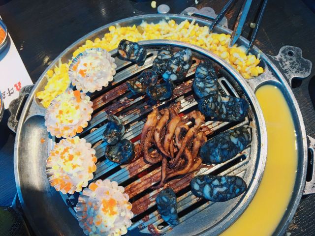 店名:牛岛·碳火烤肉 地址:滨江大道191号世茂52+商场3层306 交通:地铁6号线到马鹦路站A口出 营业时间:上午11:00—晚上22:00 牛岛·碳火烤肉在武汉有两家店。这家店装修环境偏工业风,提前预定窗口座位的话,可以看到窗外的鹦鹉洲大桥,就餐环境很棒。 牛岛的烤肉味道口感还是很好的,烤盘周边铺上玉米粒和芝士条很合适,牛五花吃起来鲜嫩,掌中宝是我喜欢吃的,阿根廷奶油大虾也不错。