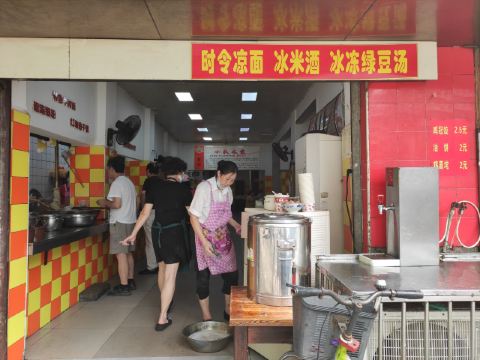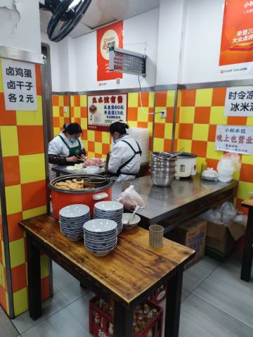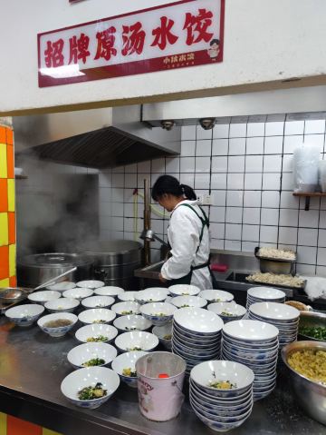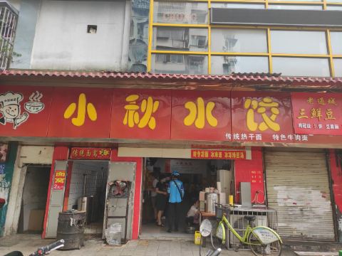 蓝海清风1号店名:小秋水饺 地址:大成路66号 营业时间:早上5:30—下午16:00 吃完赵师傅热干面和油饼包烧麦就来到小秋水饺继续吃了。在小秋水饺吃的是单人套餐,含小秋水饺12元,热干面6元,米酒2元。 【环境】 看似普通的门面,店里堂食座位空间还是比较大的。 门口处有收银师傅在点单付款后会给粮票,拿到相应位置给相应人员就可以了。米酒在门口,水饺和热干面在窗口处,面窝在一个比较窄小的门面。 可以往里走坐着吃,有两个空调和若干电风扇,夏天坐在空调旁边座位下吃还是很爽快的。 【口味】 小秋水饺是原汤水饺,现在价格12元一碗,吃时数了下里面共有18个水饺。水饺又名混沌,他们家的水饺里面放有紫菜和葱,闻到猪油和胡椒味,是骨头汤底,水饺个头大,薄皮肉多,吃起来鲜香入味,汤汁浓郁,味道纯正,是小时候家乡的味道。 热干面分量给的还是比较足的,放有芝麻酱拌料,在我拍照的功夫后,显得有点有点坨了,能吃出武汉人爱吃的胡椒辣味,面条劲道,口感偏干,味道比较普通,感觉比不上吃过的大多数武汉热干面,不太对我的胃口,没吃完剩下了。 米酒可冰可热,下午来的迟,被告知只有热米酒了。米酒虽然便宜,却是全场个人体验最佳,他们家的清米酒舍得放糖,喝起来甜甜的又解渴,鸡汤糖水和酒糟混合的很适宜,爱了。