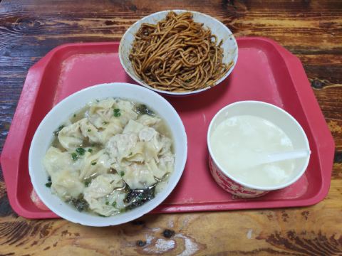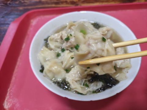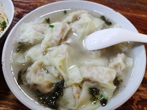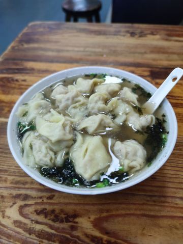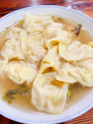 XIAO QIU住在武昌,来继续必吃榜美食之旅,今天来打卡这家水饺店,11点前到的,还不需要排队,买单后去窗口拿 招牌原汤水饺,这本身有点像小馄饨,但是每只都放了不少馅,肉的味道特别好,尤其是这个汤料的调味绝了,这鲜得眉毛都能掉下来 红油热干面^这个一定要让阿姨多放一勺芝麻酱,味道不错,属于中等偏上水准 便宜又好吃的一家小吃店,武汉真的也算是小吃的天堂了