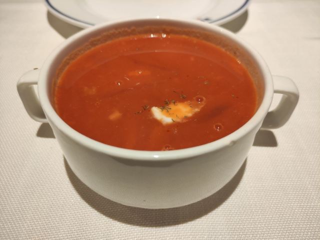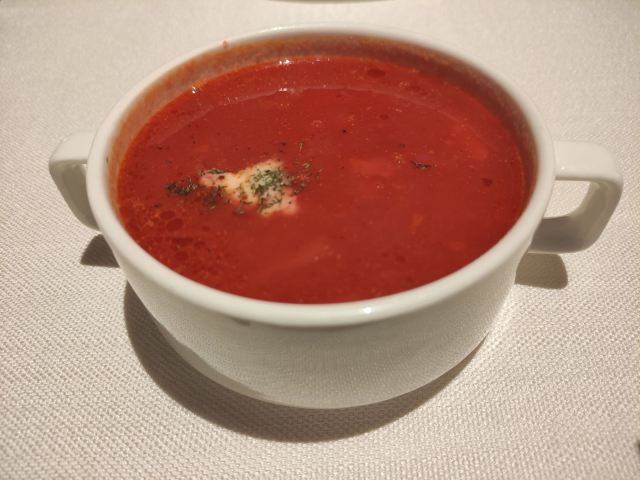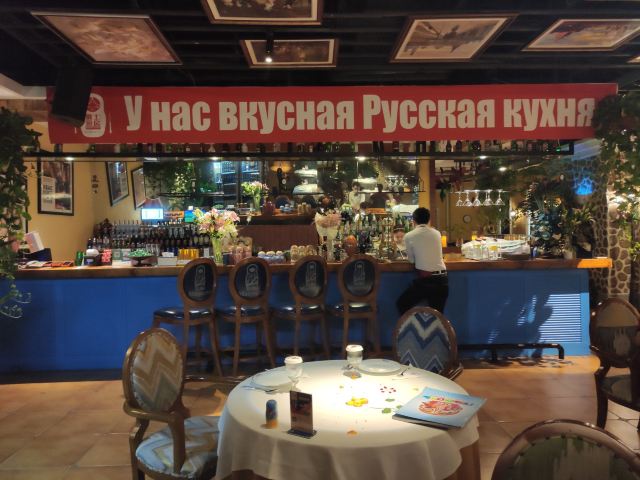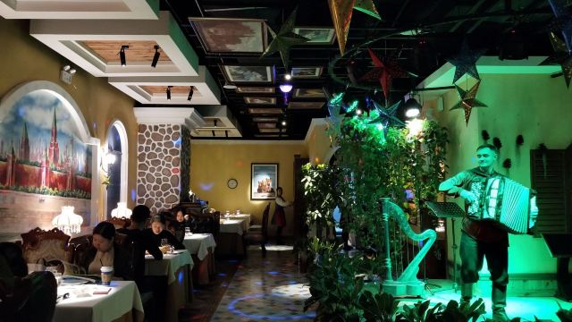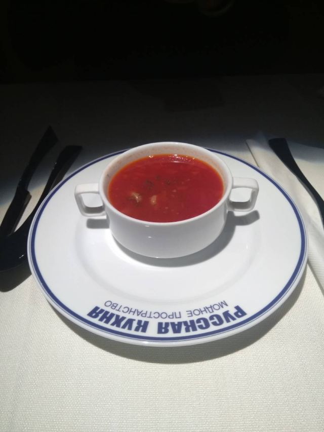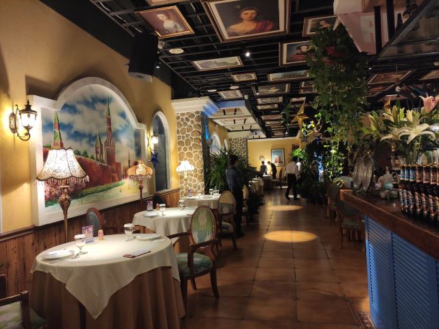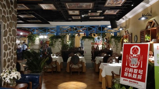 第三次来俄式厨房了。这次是在俄式厨房微信公众号秒杀的莫斯科红菜汤,价格22元的莫斯科红菜汤秒杀价9.9元,限购一份,到店报手机号即可,餐位费免费,服务员会主动给倒水喝。餐桌上有餐厅纸。俄式厨房装修环境典雅,就餐环境有格调,菜品精致,莫斯科红菜汤味道不错。